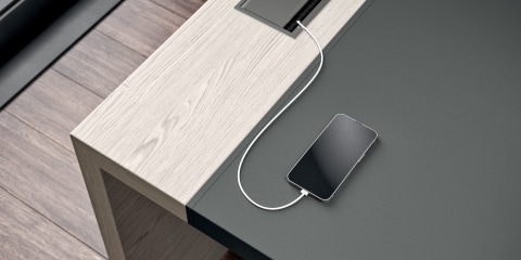 The evolution of the X10 line, with some modifications to shapes and finishings. The desk has a variety of customisation possibilities, such as lacquered or veneered panel legs. Some desk models also have a leather inlay.
